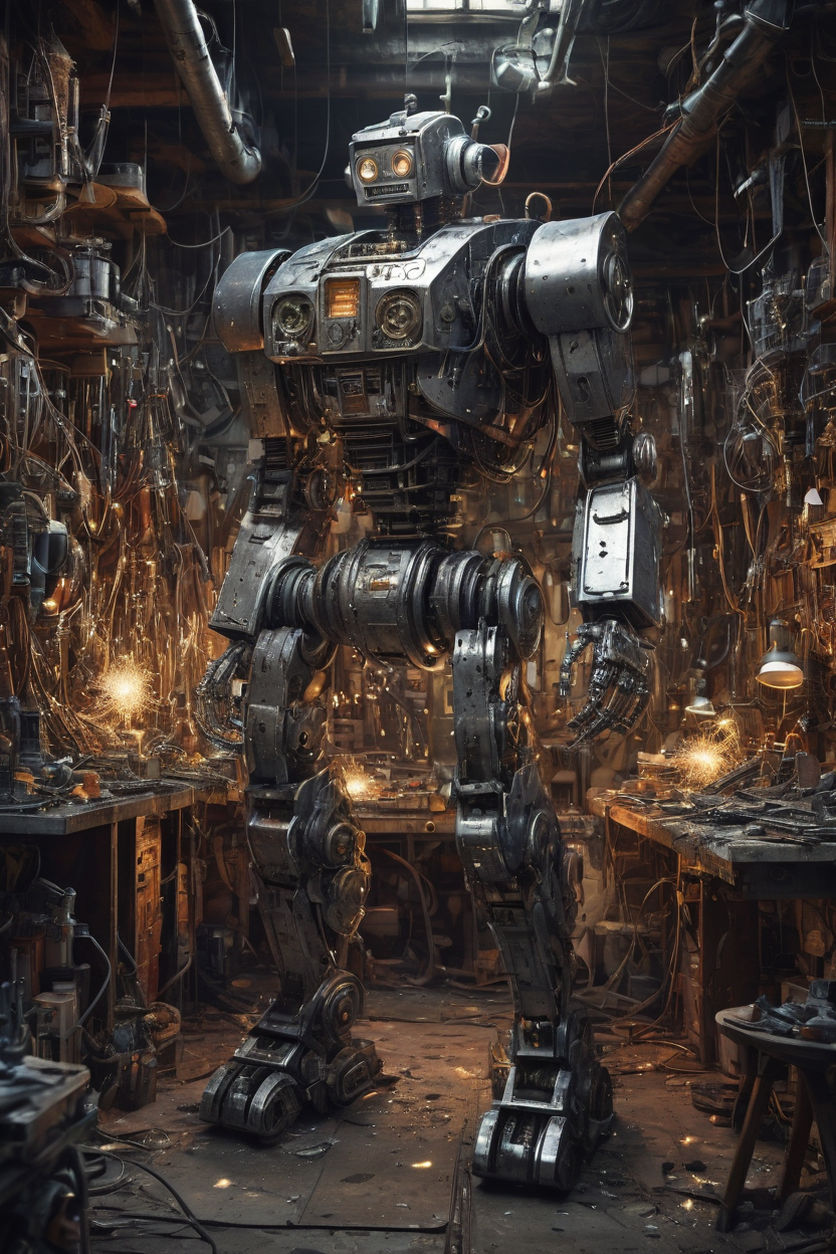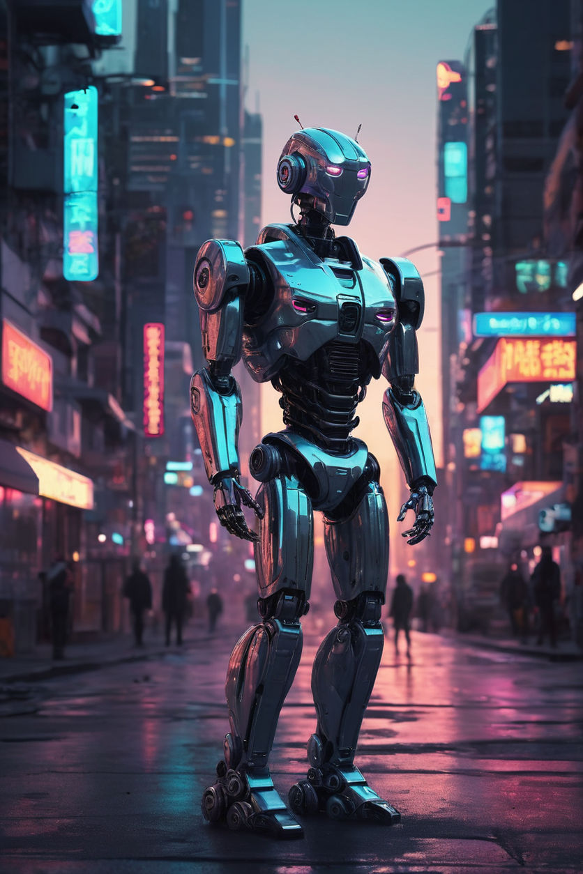 Futuristic Robots: Sci-fi-themed humanoid robots with expressive faces and mechanical aesthetics.
