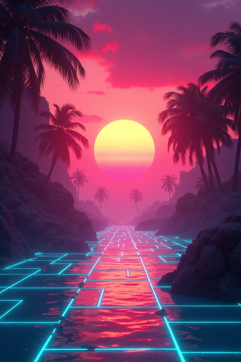 Vaporwave Vibes: Bold, colorful, retro-futuristic portraits that blend neon tones with nostalgic 80s and 90s design.